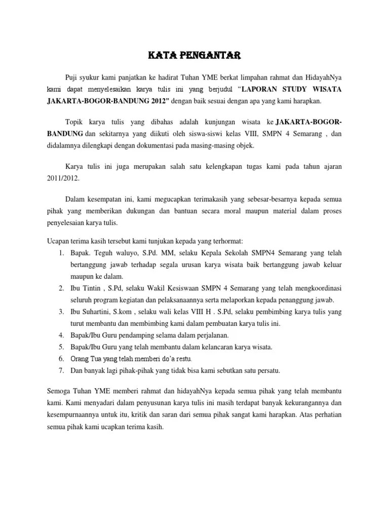 Dalam laporan ini membahas tentang beberapa * sekolah sebaiknya dapat memberi . Makalah tentang study tour ke beberapa tempat wisata di bandung ini disusun sebagai bentuk proses belajar mengembangkan kemampuan siswa. Laporan kegiatan study tour tahun 2019 bertempat di bandung dengan judul laporan perjalanan ke bandung, telah di periksa dan disahkan pada :. Dan melanjutkan perjalanan mereka ke bandung sebagai tujuan pertama.